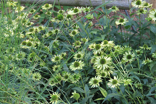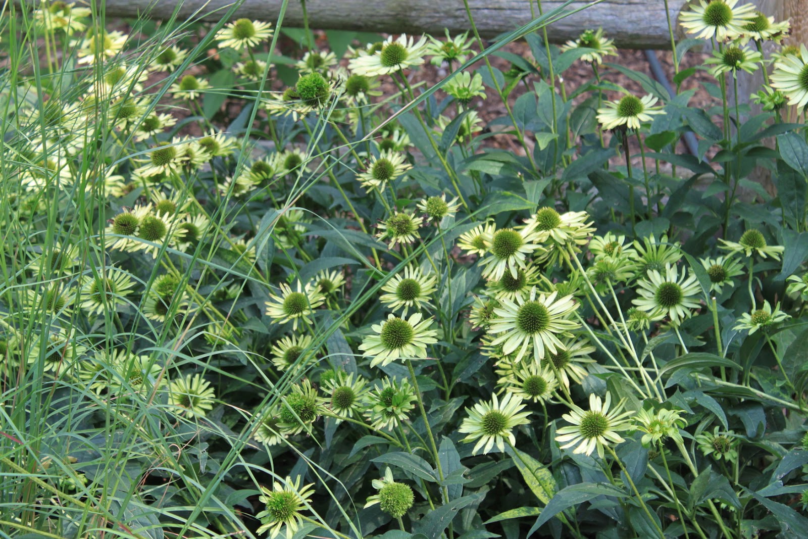 We came across this nice mass planting of green coneflower, Echinacea 'Green Jewell'. They look great as stand-alone plants in the garden, but backed by dark foliage the green flowers can really pop! It was nice to see this performing well and at a good mature size of 3' tall.