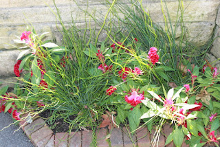My picture here doesn't do this combo justice. Juncus and Celosia. Celosia is one of those plants that I see in flats on the retail bench and don't think of as something I'd use. But every time I see them in a garden, they impress me.