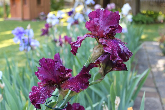 For those who may not be aware, I'm a big fan of Irises. I've even dabbled in hybridizing a little, though nothing worth introducing. (My most recent cross is Iris lutescens campelli x Iris 'Boo', blooms likely in 2015) German bearded Iris are super easy to grow and very drought tolerant, but don't seem too popular in gardens lately. They are susceptible to iris borer, but it's a fairly easy pest to prevent. The other big maintenance chore is division, which they need every 3-5 years to stay full and blooming well.